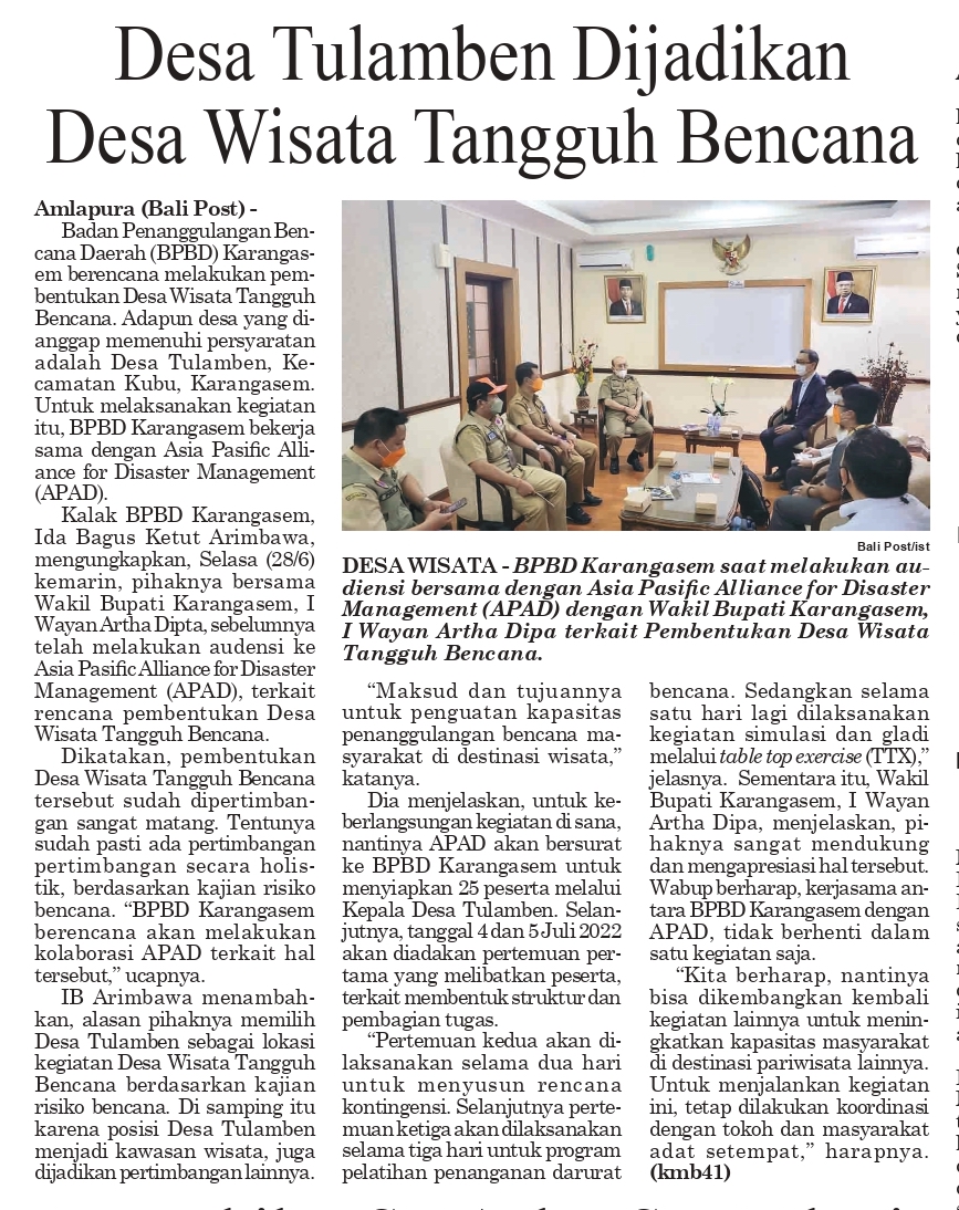 【Media】 A-PAD Indonesia Featured in Bali Post – Disaster Resilient Tourism Village