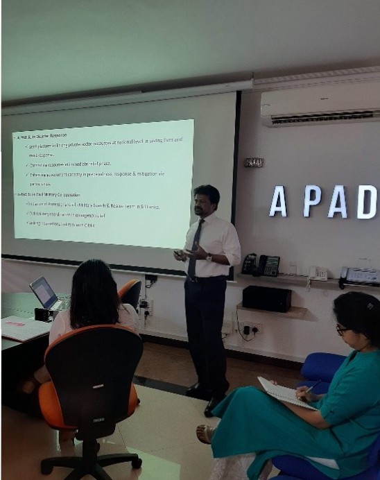 A-PAD Sri Lanka strengthened ties with the Disaster Management Center (DMC) by inviting officials from the government body on an official visit to A-PAD’s office in early August. The team led by Major General Sudantha Ranasinghe, the Director General of DMC, received a presentation on A-PAD’s journey since establishment including the continuing partnership with the Government, and A-PAD’s significant role in search and rescue (SAR) training operations in the country.