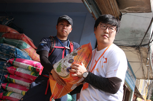 합동팀은 차 6대분량의 구호물자를 싣고 수도 카트만두에서 약 4시간 거리에 있는 쿠빈데 마을로 이동, 200세대의 마을 주민에 쌀, 콩, 소금, 식용류등의 식량을 전달하였습니다. 치안이 악화된 만큰, 경찰의 도움 아래 안전하게 배부하였습니다.