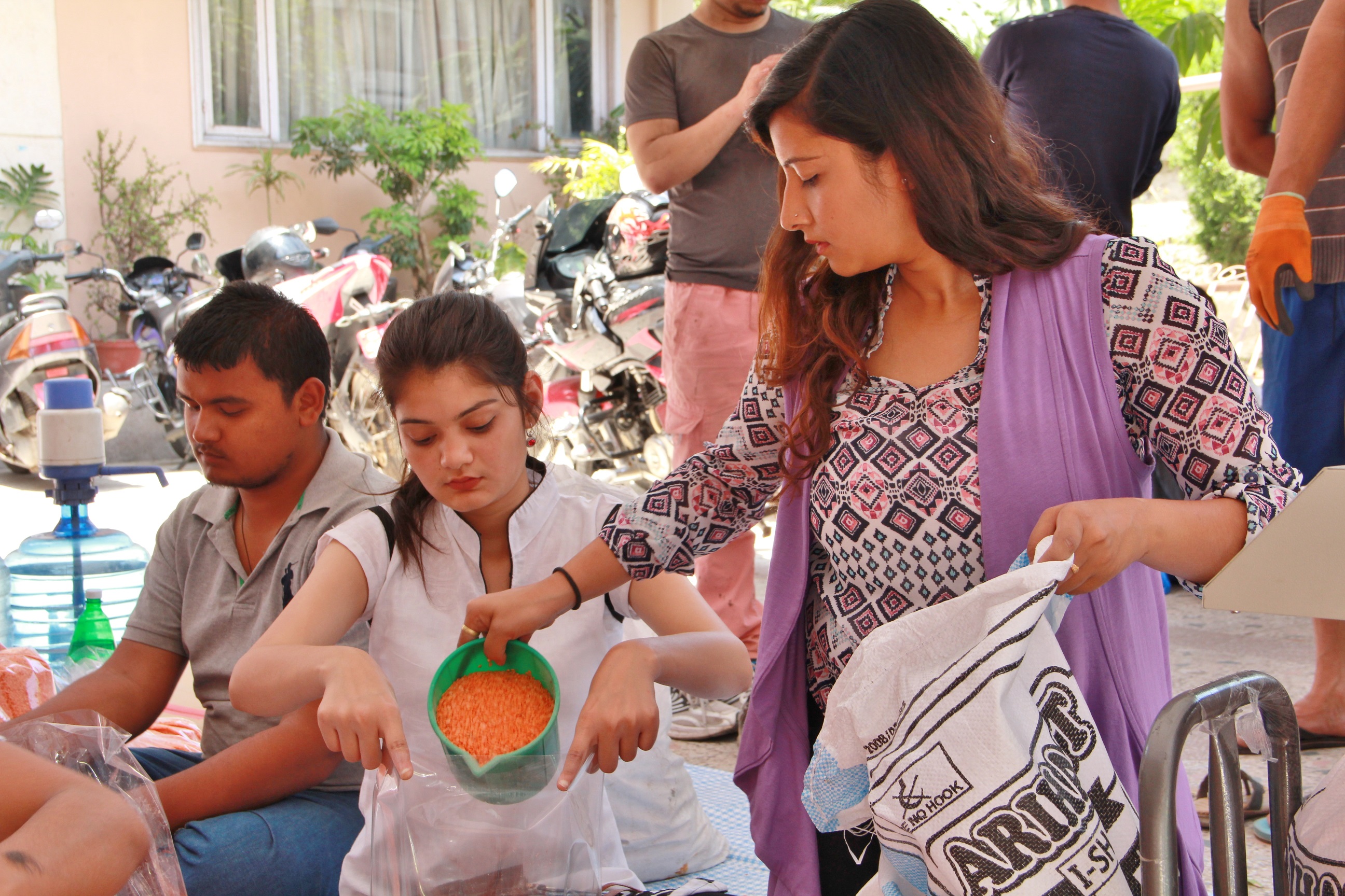 Susmita Maskey (aged 35), who is a social activist and was the first Nepalese woman to have climbed the world’s Seven Summits, also participated in the repacking. She coordinated about 30 volunteers and said “After the earthquake I individually conducted activities such as rescue work and debris clearing. I am not caught up in my own organization’s work and now I feel strongly about helping as many people in Nepal as I can.”
