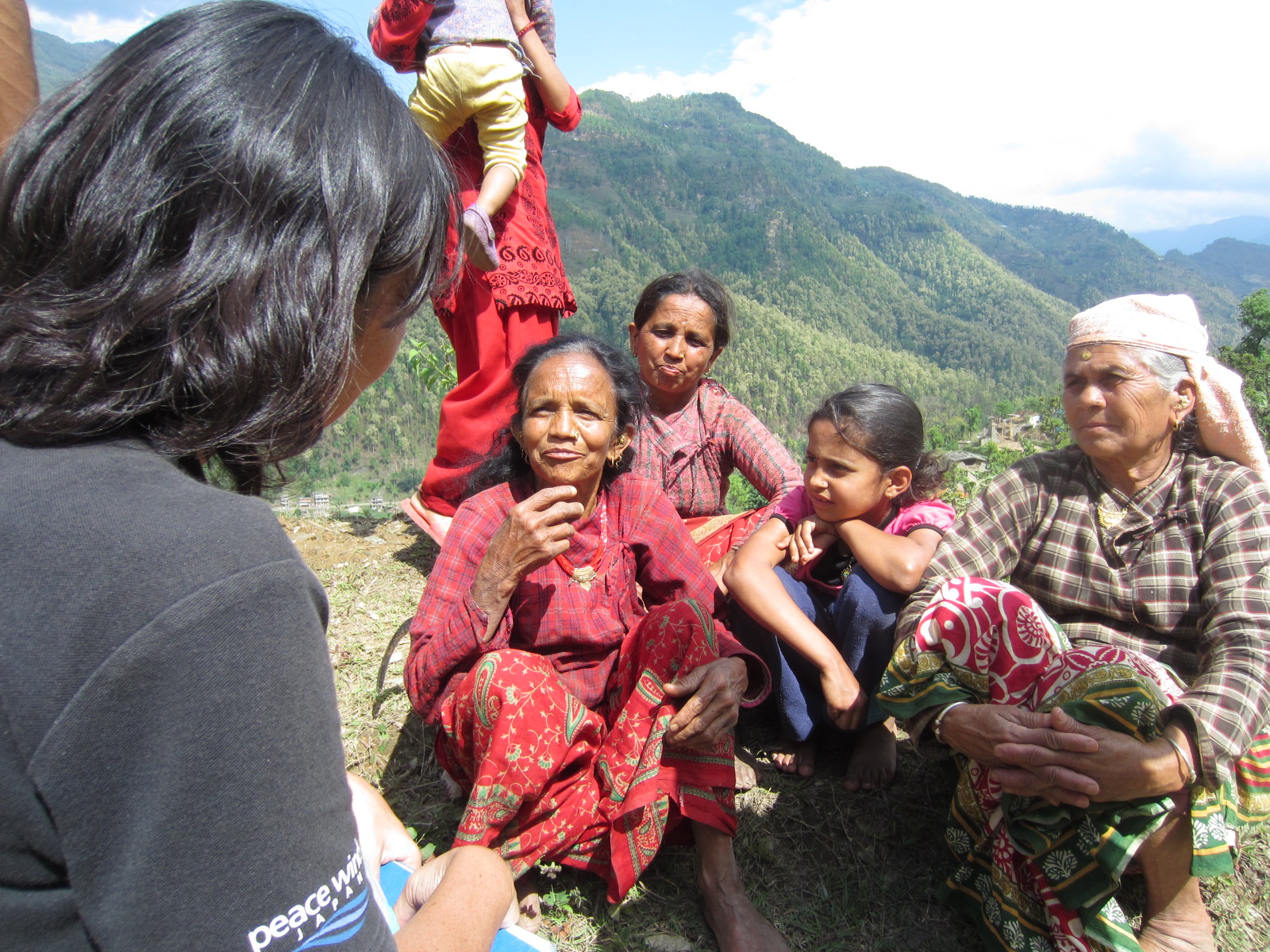 After discussions with a local CBO Zanahi, the team decided to go to Khubinde village. A-PAD COO Kaori Neki reports that from Chaultara, it took about an hour and a half?journey up the mountain?to reach the remote village of Khubinde, where she observed almost all houses were either completely or partially destroyed. 650 families live in this village and most of them are taking shelter in the local school camping outside in makeshift tents.