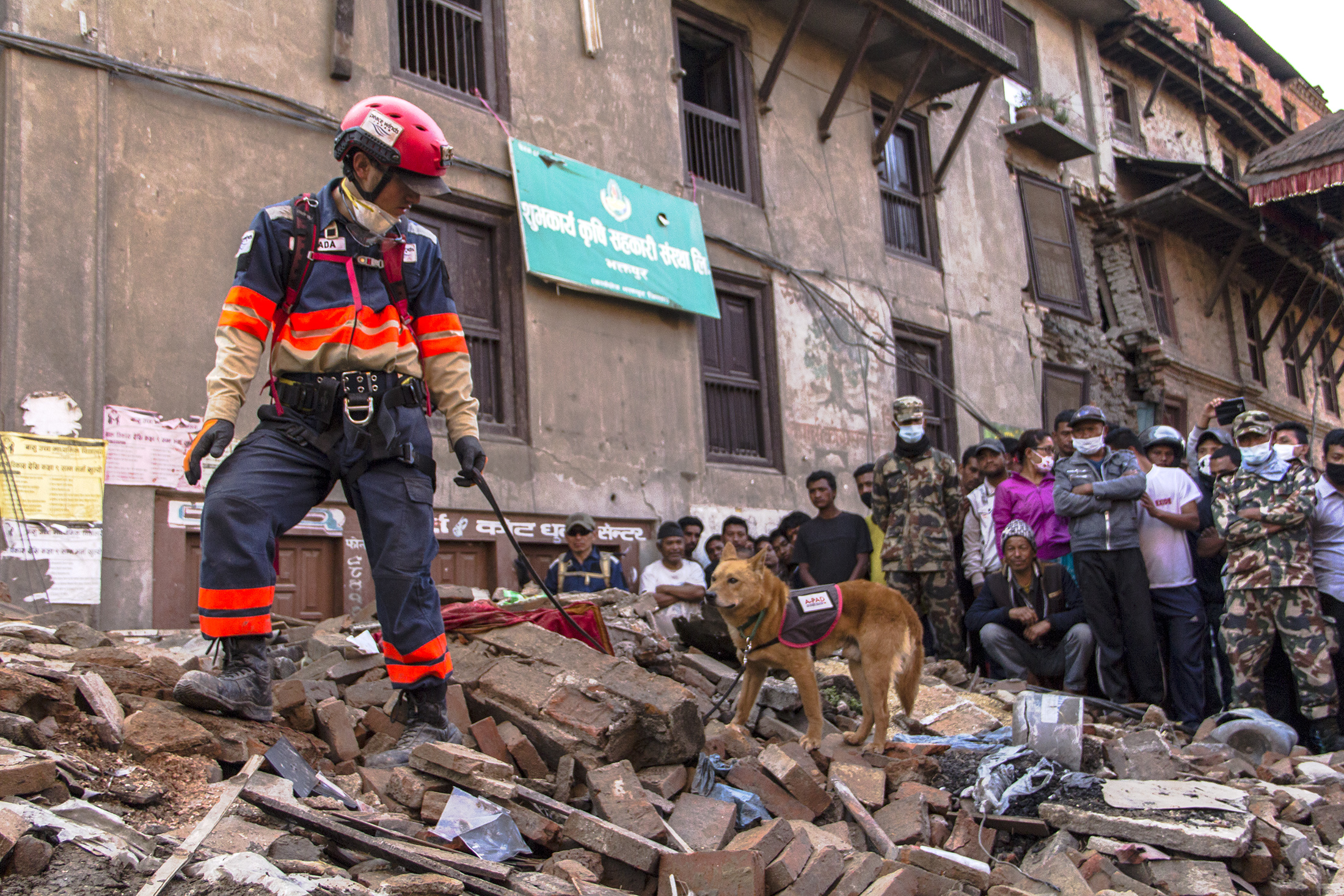 PWJ’s SAR team and sniffer dogs conducted operations at the severely damaged locations in Bhaktapur district, following the advice of local residents and authorities who pointed areas where people are believed to be trapped under the rubble. Unfortunately, the sniffer dogs Halc and Yumenosuke could not find any sign of life. They will move to different locations the next few days while gathering information from USAR and local authorities.